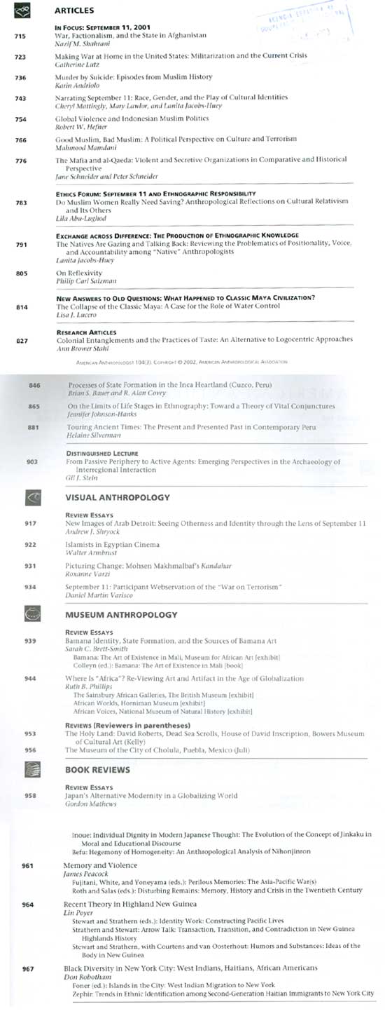 2002 vol. 104; n. 3; sept. (Sumario Imagen) 7 False /galerias/imagenes/revistas/sumarioImagen/american-anthro-n3-2002.jpg Se abre en ventana nueva: Sumario Default True