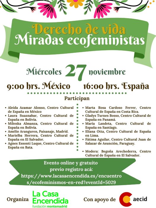 La Casa Encendida y Paisanaje, con apoyo de la Agencia Española de Cooperación Internacional para el Desarrollo (AECID) en el marco de la iniciativa ‘Derecho de vida. Miradas Ecofeministas’ de la Red de Centros Culturales de la Cooperación Española, organizan el 27 de noviembre el Encuentro Ecofeminismos en Red.